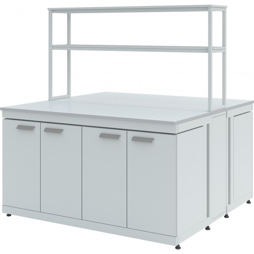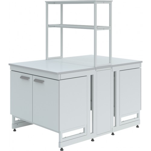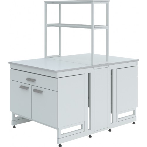 Стол островной ЛК-1500 СО дополнительно может комплектоваться различными тумбами, а также сливными раковинами, кранами для подвода воды или газа (сжатого воздуха), которые монтируются в технологическую приставку.