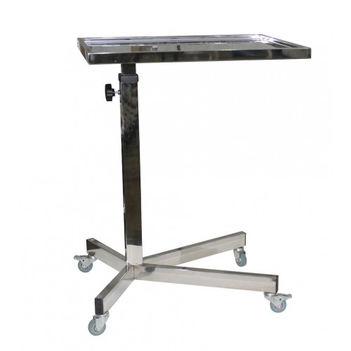Стол медицинский инструментальный Э-160-СХ предназначен для работы в операционных, перевязочных, а так же для обслуживания больных в палатах. Стол изготовлен из тонкостенного нержавеющего профиля. Рама стола установлена на три колесные опоры с тормозом. Высота стола регулируется, фиксируется прижимным винтом в любом положении в пределах регулировки. Конструкция разборная, разработана с учетом удобности транспортировки.