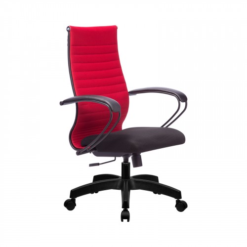 - красная спинка с черными накладками подлокотника и черным сиденьем.