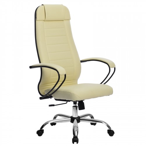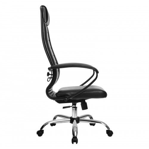 Спинка: высокая с мягким подголовником, черное полимерное покрытие каркаса ширина 475 мм;