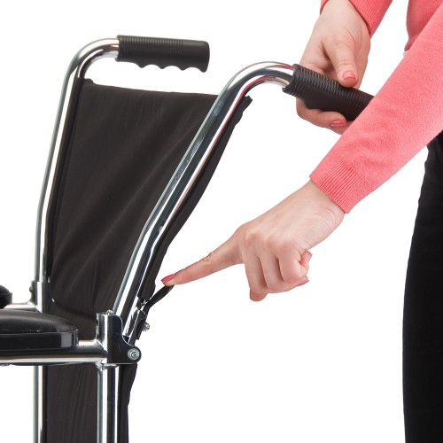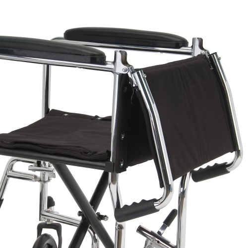 Рама кресла-коляски - складная, изготовлена из металлического сплава с хромовым покрытием.